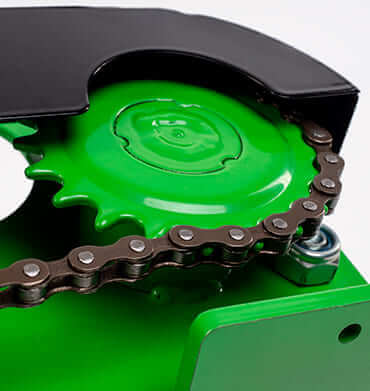 Цепь - надежное и эффективное решение. КПД такой передачи 97%. Усилие передается практически без потерь. Нагрузка на валы минимальна. Цепь не проскальзывает.