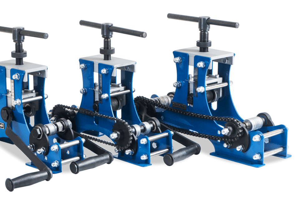 Опорная клеть поднимается и опускается, поэтому радиус гиба можно менять. При поднятой клети радиус гиба меньше. Докатывайте уже загнутые трубы или гните сразу с меньшим радиусом. Конструкция не имеет аналогов.